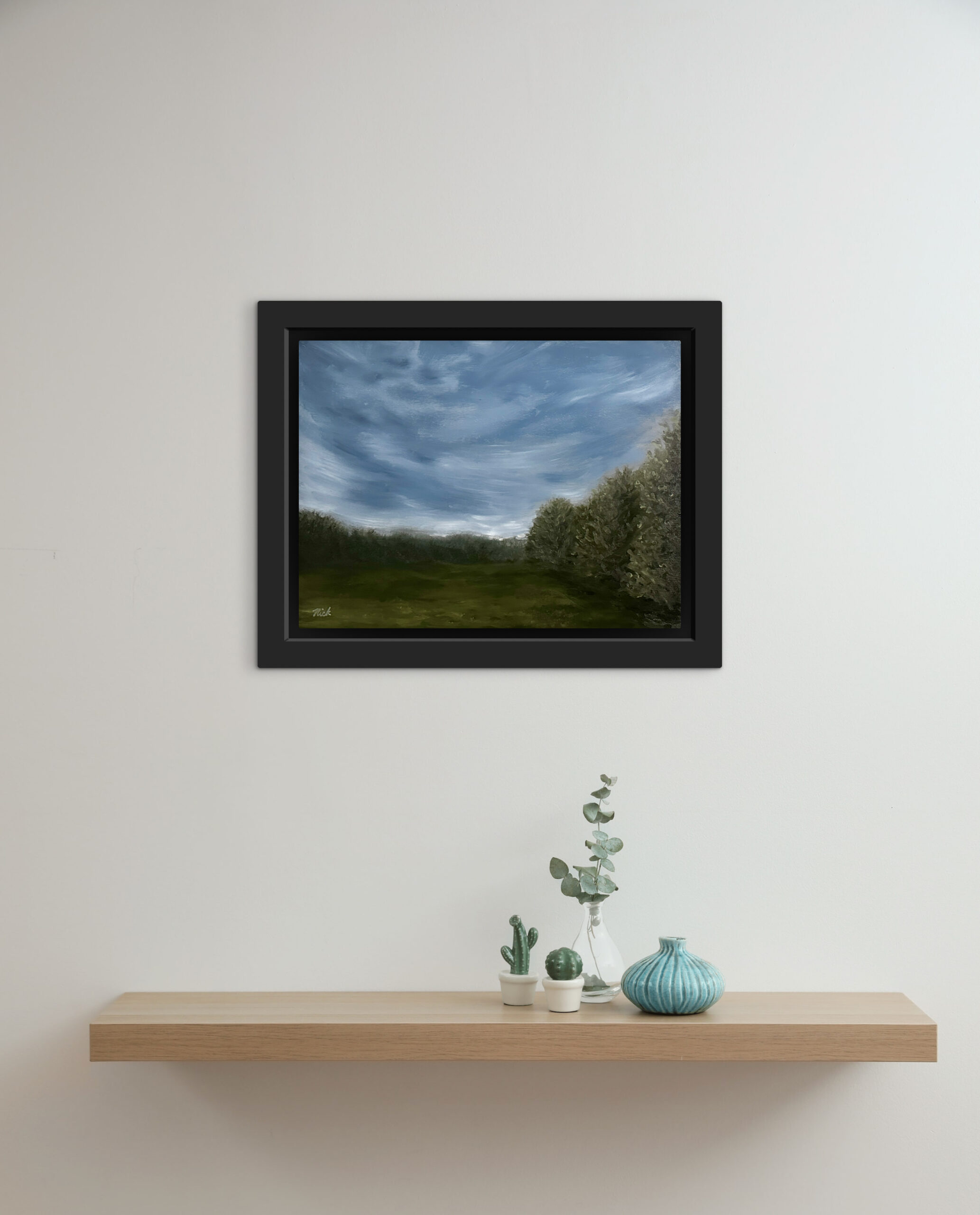 Artist’s often say that art is a “window into another world”. For me, I have found that art serves more as a window out of our digital world into the real one. I’ve spent a large majority of my life staring at a screen whether it be for entertainment, education, or work and I create art as a way to escape that digital world and reconnect with our physical one God blessed us with. I am particularly drawn to creating landscapes because they have the power to evoke that sense of vastness, of something larger than ourselves. A well-crafted landscape can remind us of the “bigness” of the world around us, and by extension, the enormity of God as a maker himself. My hope is that my art offers a visual experience that shifts the viewer’s perspective, inviting them into a space that encourages reflection, tranquility, and awe—a space that feels like a sigh of relief or a deep, refreshing breath of air.