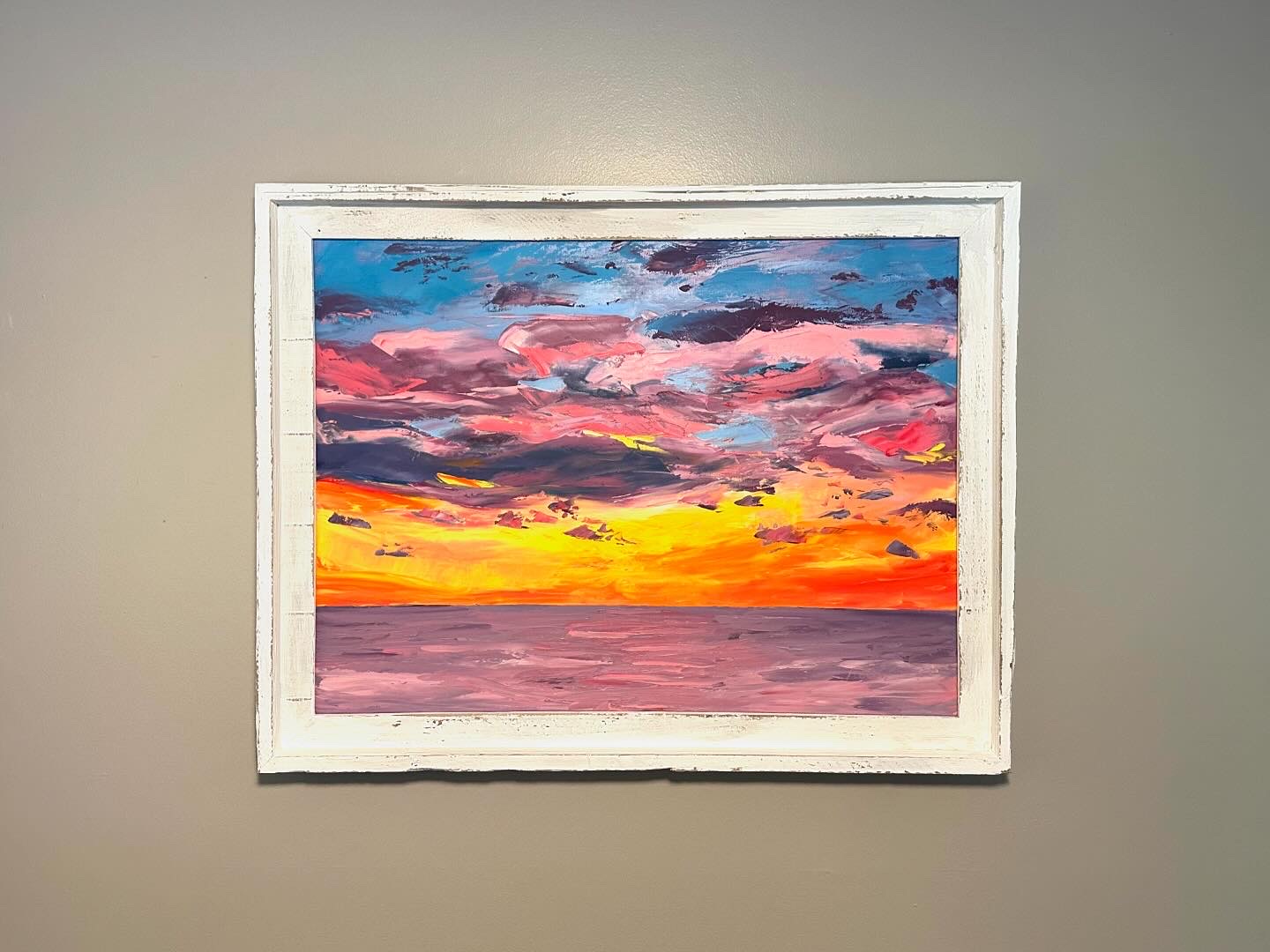 18″ x 24″ oil on canvas. Distressed white frame included.